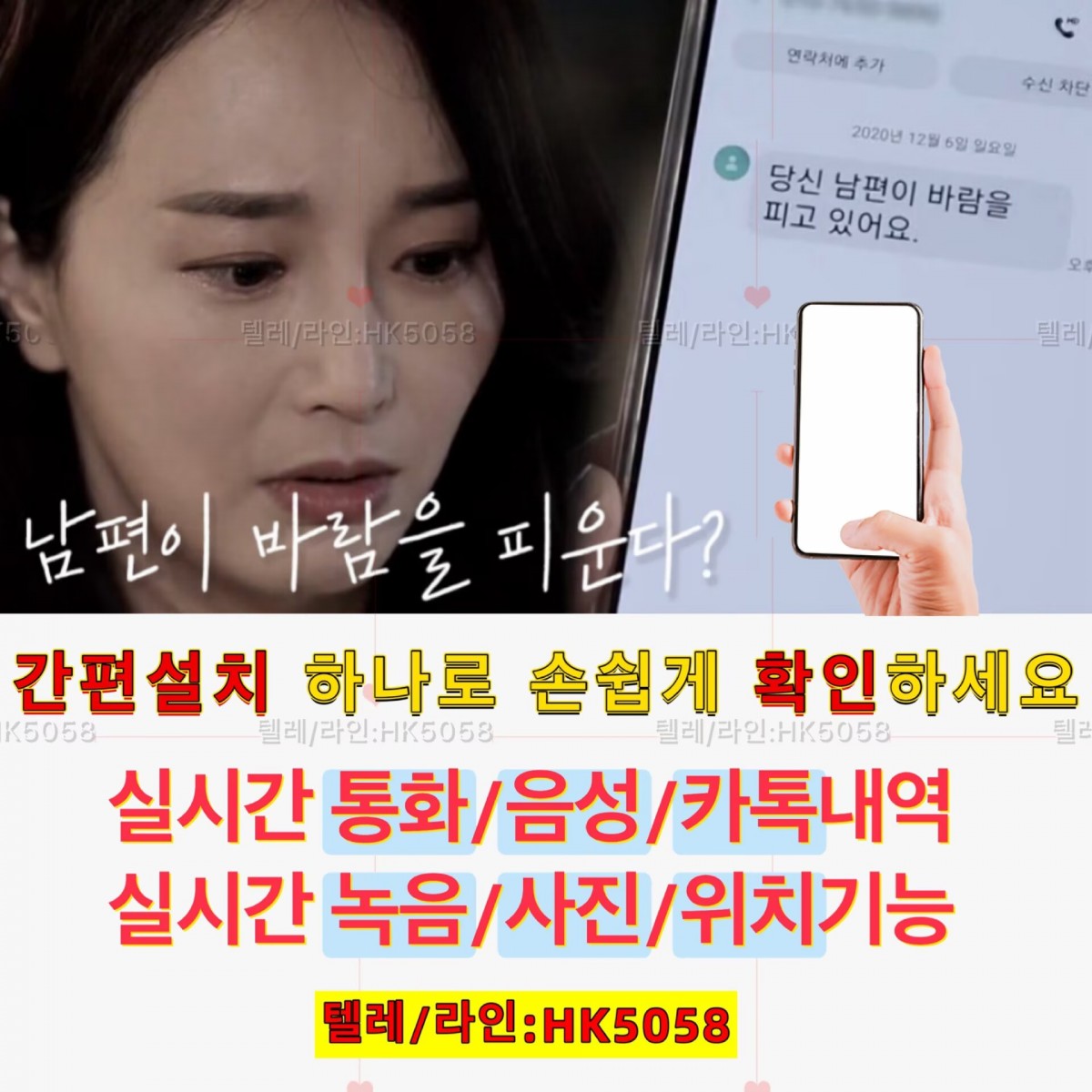 바람난배우자♨️텔레+라인:HK5058♨️외도증거수집/이혼소송(카톡내용확인및복구⭐통화도청⭐실시간위치추적⭐카메라사진촬영 등)