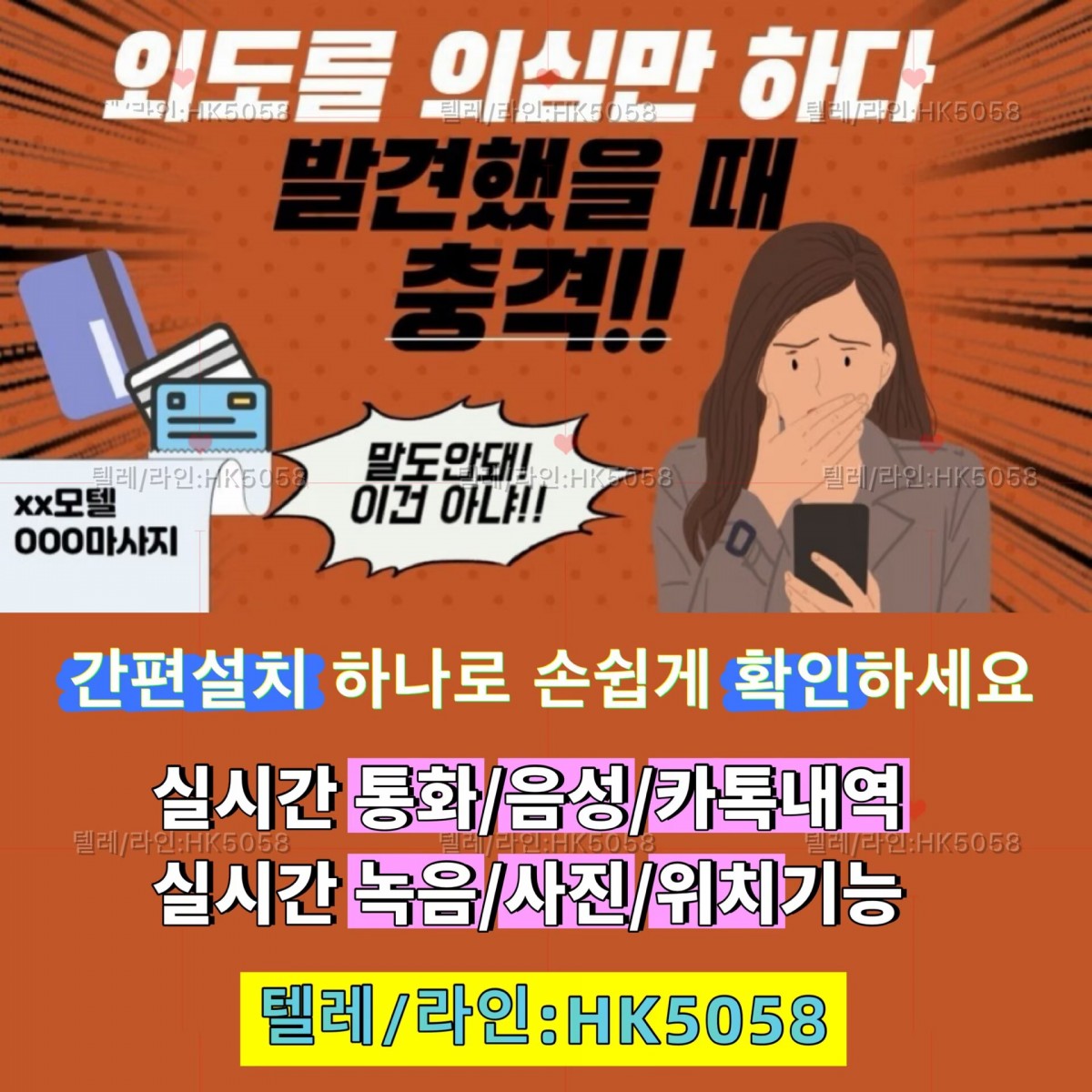 핸드폰도청/복제폰/쌍둥이폰/위치추적어플/스파이앱/핸드폰해킹/카톡해킹▷바람난남편 바람핀와이프(아내) 결혼전배우자뒷조사 불륜 외도증거수집(삭제된카톡내용확인및복구/통화기록조회/문자내역조회/실시간위치확인/실시간메시지확인/통화내용감시/카메라사진촬영)